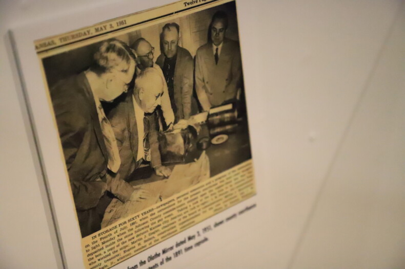 The capsule, a 10.5-inch-by-13-inch copper box at the center of the exhibit, was all but forgotten to history until crews found it while demolishing the old courthouse in downtown Olathe after the new courthouse opened across the street.