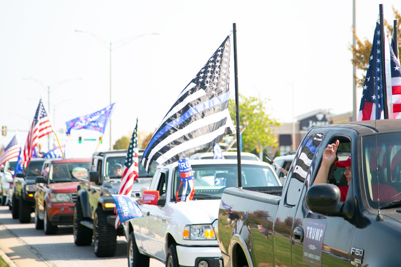 “Thin blue line” flags also frequently appear at conservative political events and rallies, including notably in 2020 for then-President Donald Trump.