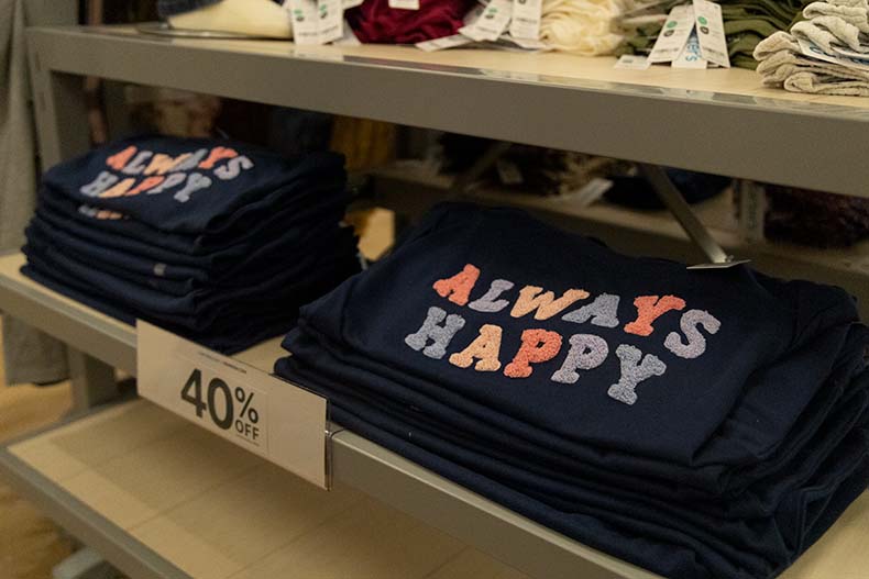 - The store’s inventory includes basic apparel like tops and shorts, as well as pajama sets and rompers.