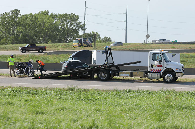 According to the highway patrol’s online crash log, a 56-year-old man from Atlanta, Kansas, was riding a 2007 Harley-Davidson motorcycle northbound on Interstate 35, approaching the exit ramp to eastbound Interstate 435.