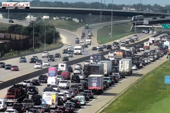 The crash forced Troopers to close the ramp from northbound I-35 to eastbound I-435 until a tow truck arrived, causing traffic to slow back to 119th Street.