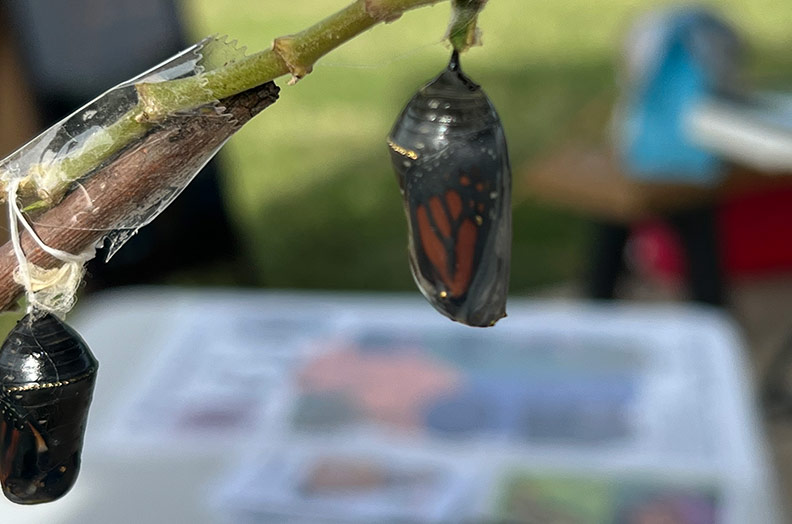 Ann Patrick and Esther Kong, volunteers with Monarch Watch, showcased milkweed plants, monarch caterpillars, as well as monarchs through their entire chrysalis process and their final stage as fully-developed butterflies ready for tagging and release.