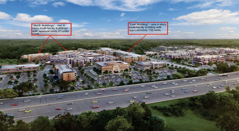 - That will include two low-density four-story multifamily buildings with a total of 42 units between them (called the North Buildings).
