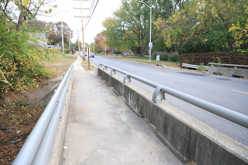 The bridge that exists today has space for two lanes of motor vehicle traffic. There is also a five-foot pedestrian bridge next to it and a completely separate bridge for foot and bicycle traffic on the Overland Park side of the road.