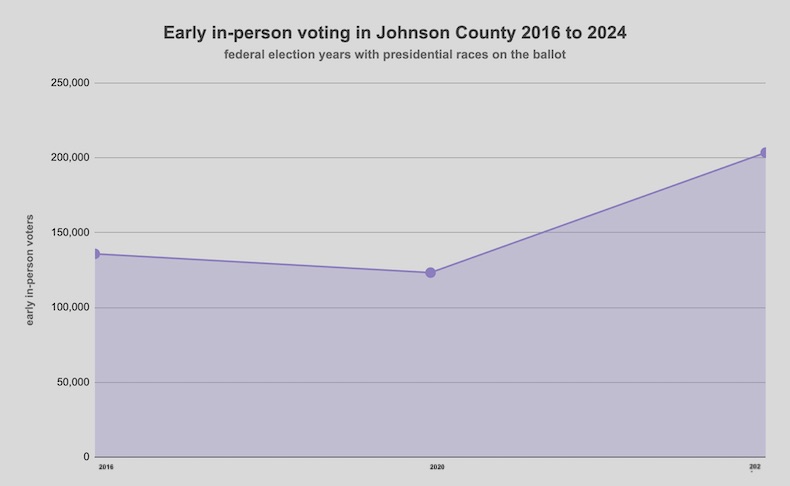 The number of voters so far who have cast ballots early in person in 2024 far surpasses the numbers for the last two presidential elections in Johnson County.