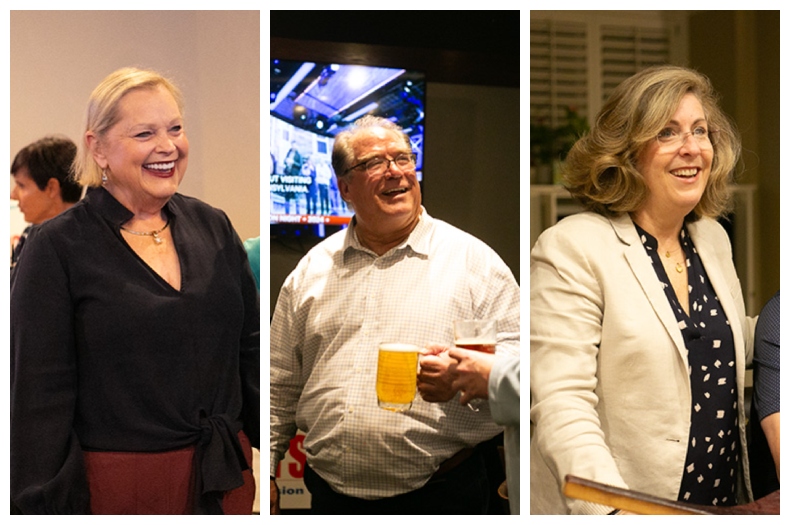 From left, incumbent commissioners Shirley Allenbrand and Jeff Meyers, along with newcomer Julie Brewer, all appeared poised to win their respective races Tuesday night. Photo credits Leah Wankum.