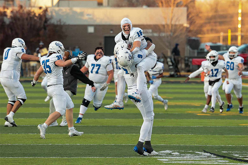 The team won 36-33 against Manhattan Friday, Nov. 29, with a last-second touchdown taking home the Kansas Class 6A trophy for the second year in a row. (The team had lost to Manhattan two years prior on the final play in double overtime, before beating Derby last year.)