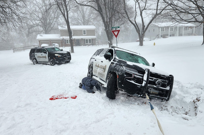 Blizzard conditions across Johnson County continued to cause significant problems for all drivers, including first responders, on Sunday.