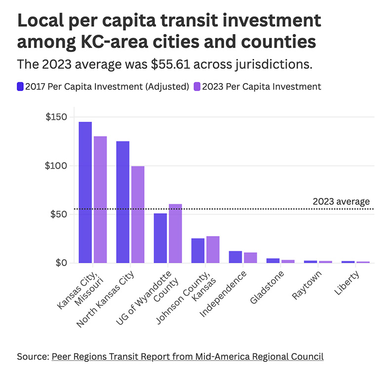 “The problem,” said David Johnson, immediate past chair of the Kansas City Regional Transit Alliance, “is that the level of service between KCMO and everything that surrounds it is so starkly different.”