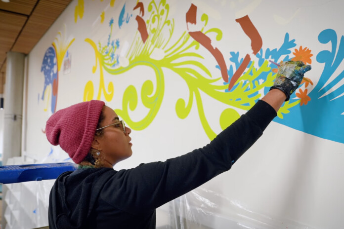 Consider Johnson County’s Merriam Plaza Library: what was once a stark white wall in the children’s section was transformed into a vibrant mural inspired by a spirited, contemplative poem, “The Understory,” by Traci Brimhall, Kansas Poet Laureate. The mural by local artist Emily Alvarez not only transforms the space but can also move the patrons to a different time and place.