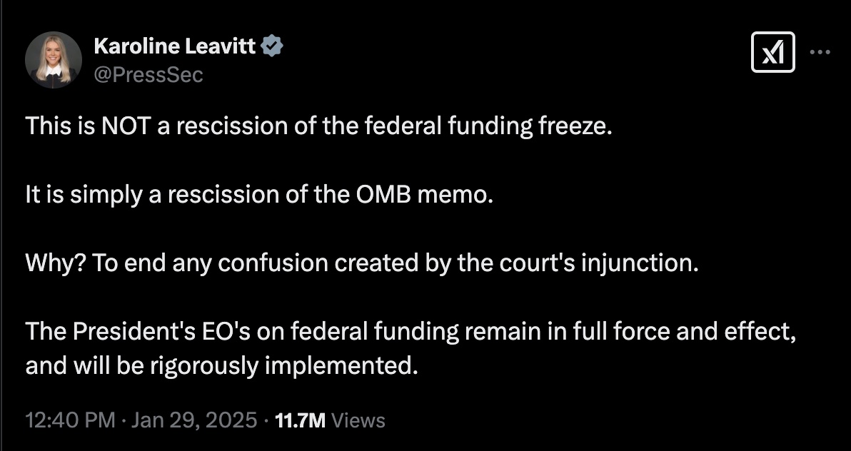 There’s been some back and forth on the funding freeze