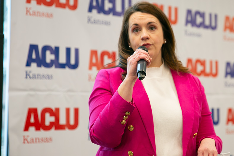 Next, Emily Wales, president of Planned Parenthood of the Great Plains, said women’s ability to access abortions and other reproductive health care in Kansas remains under threat, even though voters in 2022 soundly rejected an amendment that aimed to strike abortion rights from the state constitution.