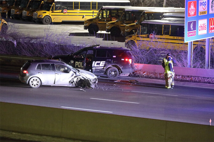 Officers from multiple agencies, including Merriam, Overland Park and the Johnson County Sheriff’s Office, also responded to the report of a police vehicle being hit on the highway.