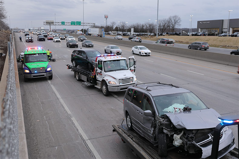 According to online call logs, Merriam Police were called to a crash with injuries on northbound Interstate 35 near Shawnee Mission Parkway at 4:53 p.m.
