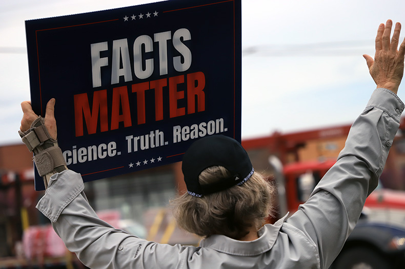“This is a very difficult time,” said Marie Hernandez, voter information chair for the Johnson County chapter of the League. “It’s hard to reach anybody outside your own silo, and that’s why we’re here on this corner trying to reach somebody. … Until we can all talk to each other, we’ll never be able to work together.”