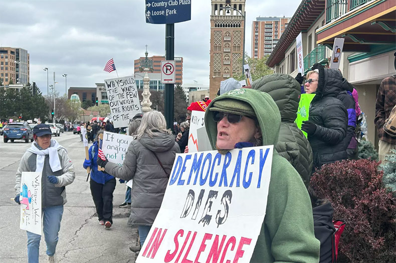 Demonstrators in Lenexa on Saturday, April 5. Photo courtesy Richard Kasper.