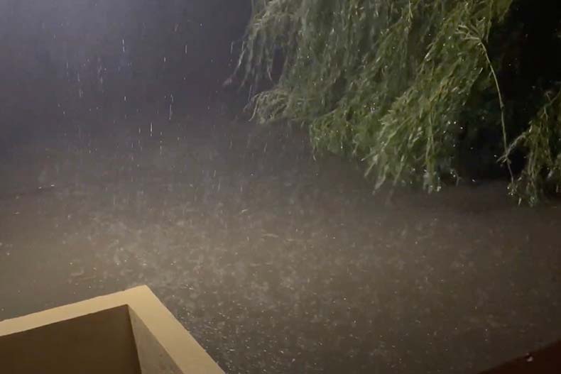 Water pooling in Guimbellot’s yard during a rain event completely submerged her fence (the top of which is barely visible in the left side of the image). Photo courtesy Kate Guimbellot.