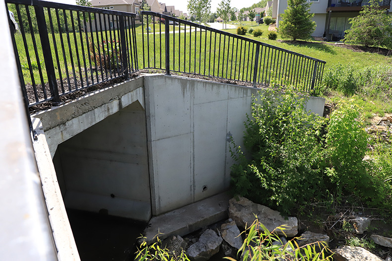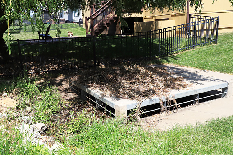 A stormwater system in the newer part of the College Meadows neighborhood that was built to design and code.