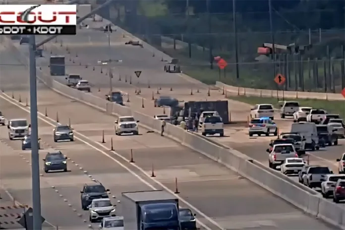 Overland Park Fire Department Media Manager Jason Rhodes said firefighters contained a diesel fuel leak from the dump truck.