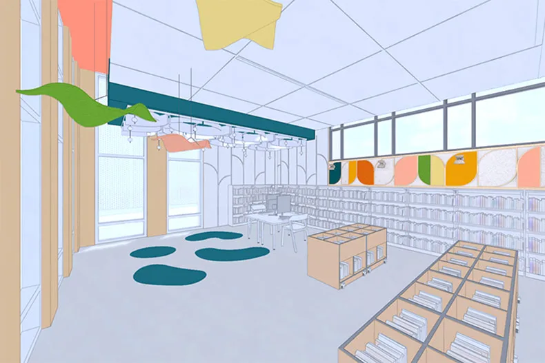 The library’s current footprint will also house updated adult and nonfiction collections, public computers, as well as copy and printing stations. A new meeting room and study room will also be added.