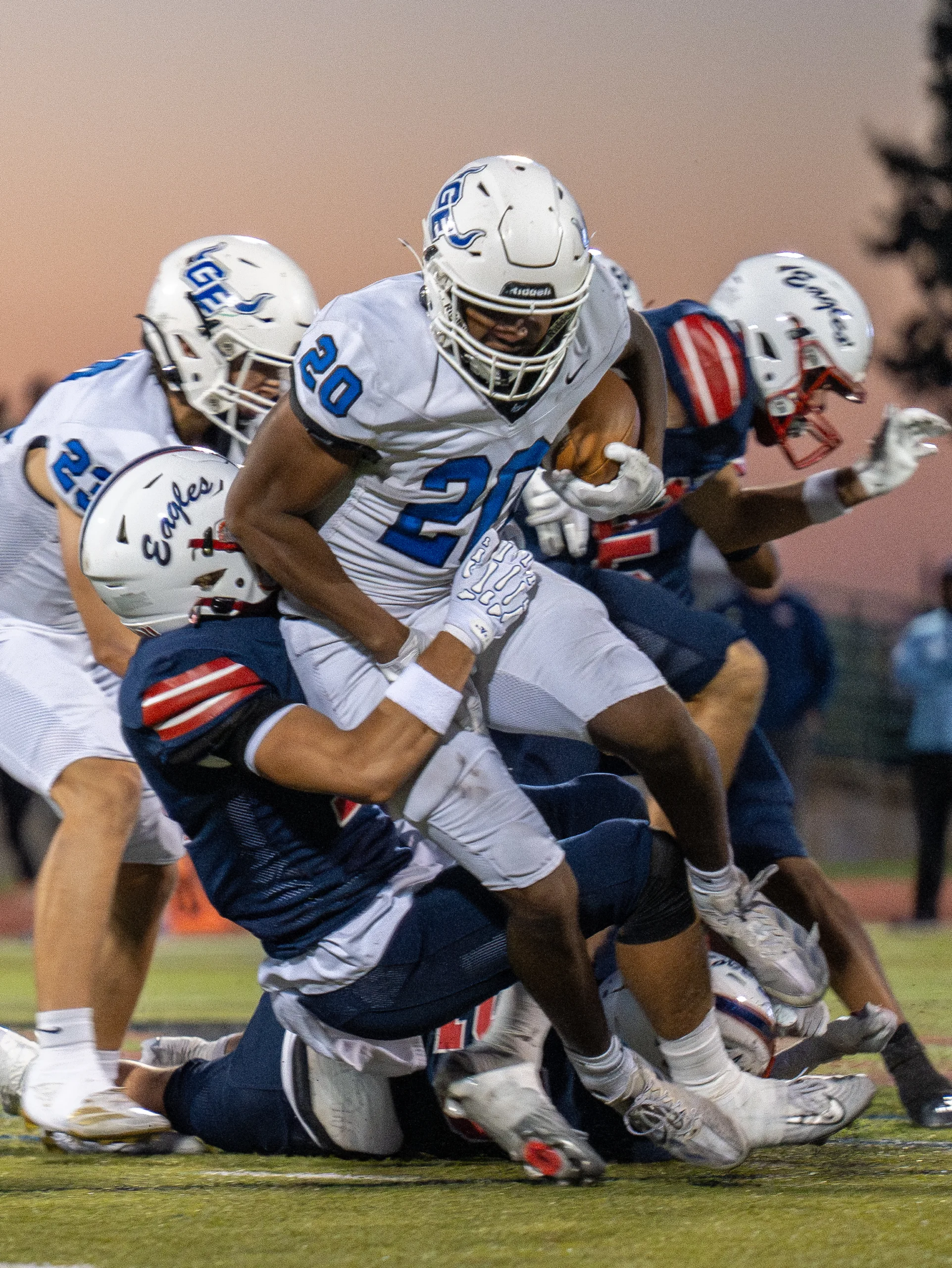 An Eagles punt after the game’s opening drive pinned the Blazers back to their own 8-yard line. Undaunted by their poor field position, the Trailblazers (3-1) answered raucously on their first play from scrimmage when senior running back Syre Padilla bowled his way through the Eagle defense for a 92-yard touchdown run.