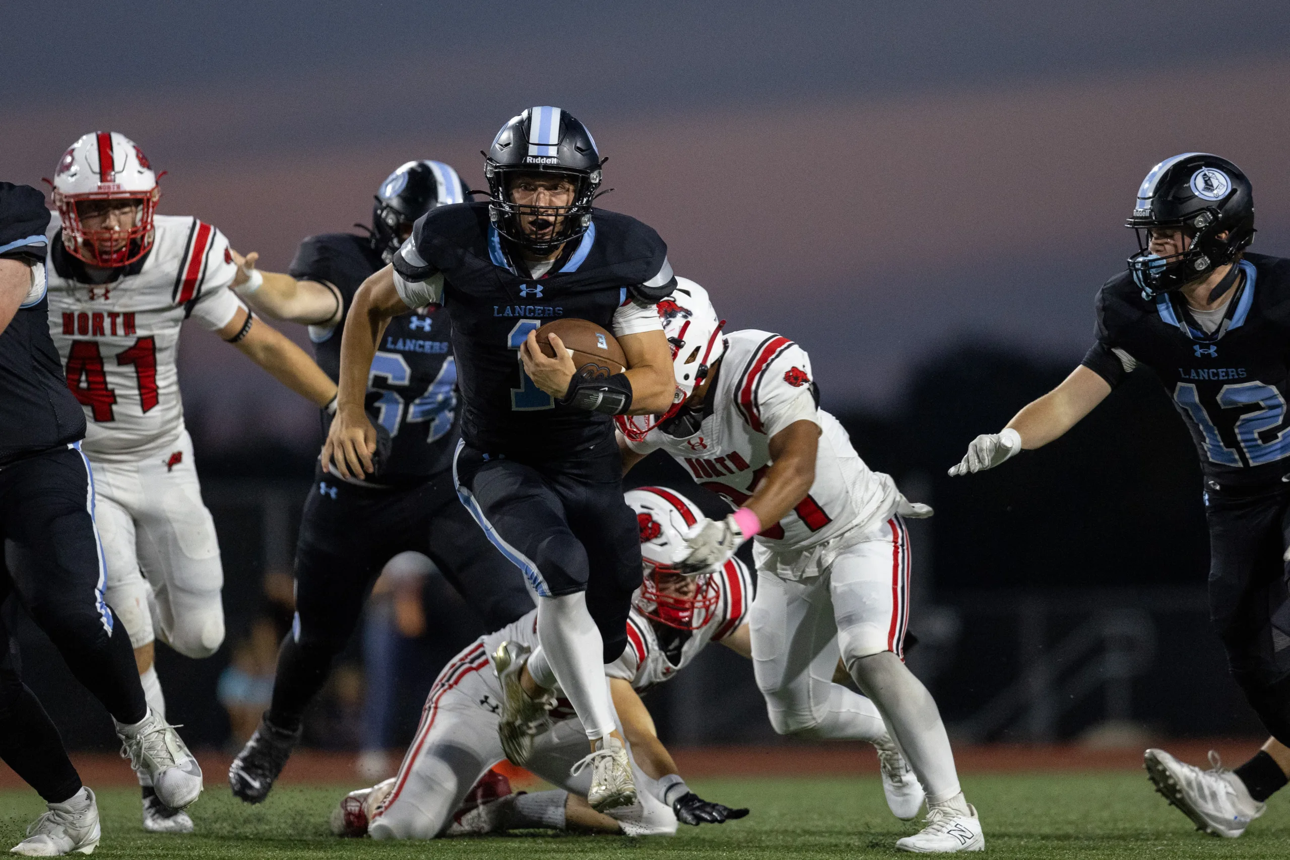 Reeves’s 51-yard run just before the half gave the Lancers a 35-7 halftime lead and topped their 34 points-per-game scoring average this season.