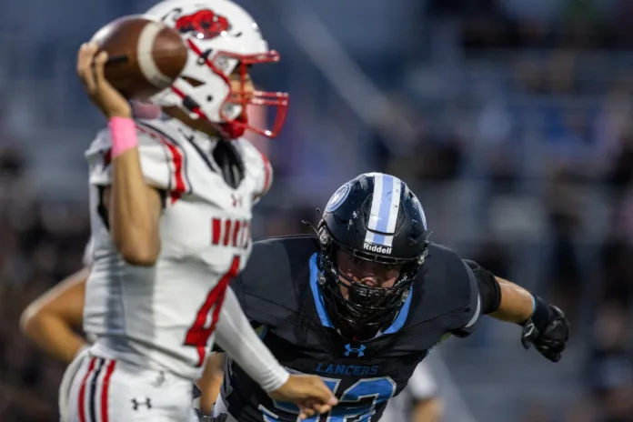 Sparked by the return of a stalwart defensive lineman who was also voted the evening’s Homecoming king, the Shawnee Mission East Lancers equaled their entire 2024 victory total with a 49-21 win over the Shawnee Mission North Bison on Friday night.