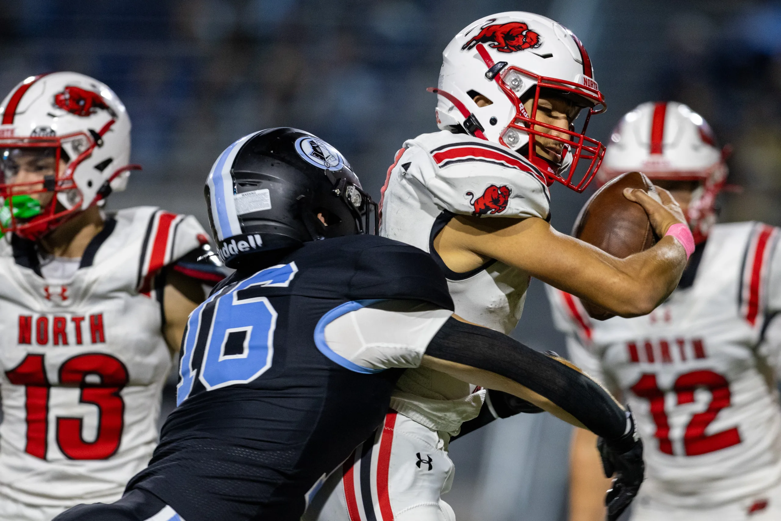 On the game’s opening drive, with the 280-pound Rider on the defensive line, the Bison (0-6) committed back-to-back false starts and were forced to punt. With the Bison backed up in their own territory, the Lancers began the night at midfield en route to a 12-play touchdown drive on their first possession.