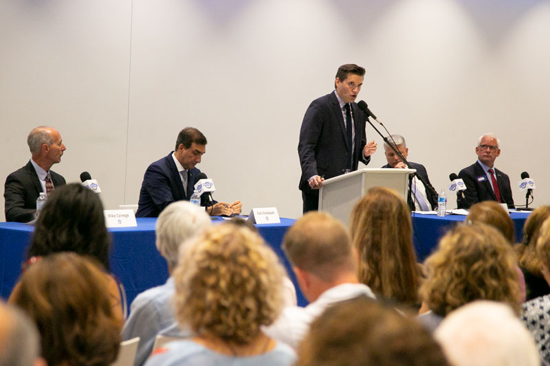 “If you think that the way that we run the city financially, with the lowest property tax, the highest quality of life, rated one of the best places to live, work, play, start a business, rent an apartment, then you should vote for me,” he continued at the forum.