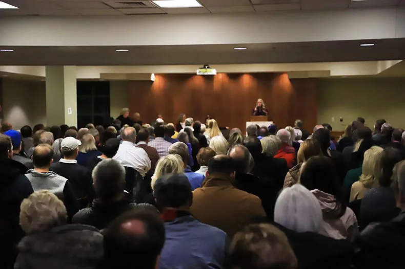 At a community gathering on Monday evening, hundreds of residents of both Overland Park and Leawood packed a meeting room at Leawood City Hall to voice their worries about a stadium so near to their homes, schools and hospitals.