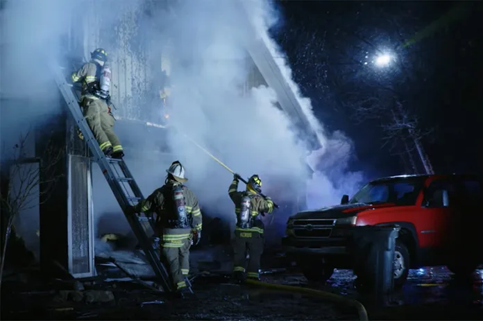 Arriving firefighters reported heavy fire from the garage and back of the two-story house.