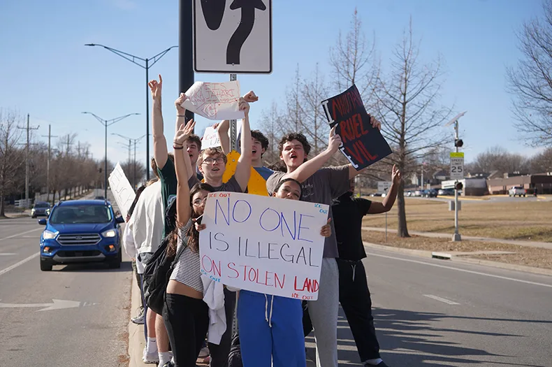 Last month, about 40 Gardner Edgerton high schoolers also protested after being let out early on a Friday. The students shared messages of support for immigrants and protested aggressive immigration enforcement tactics.