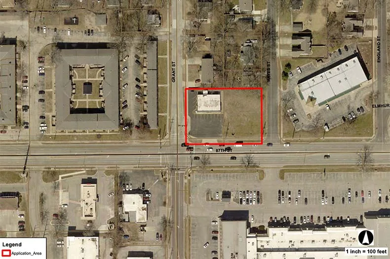 The project is partially infill — that is, the reuse of a vacant property surrounded by completed development or on a plat that is underutilized. It is surrounded by a myriad of existing uses, including some multifamily housing, retail and some single-family and duplex-style homes in the Elmhurst neighborhood.