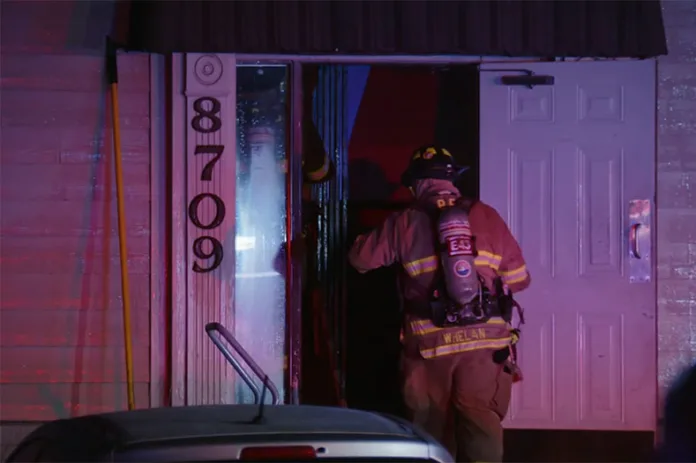 Firefighters were called to the Ainsley Apartments, 8709 West 106th Terrace, at 5:06 a.m. Monday.