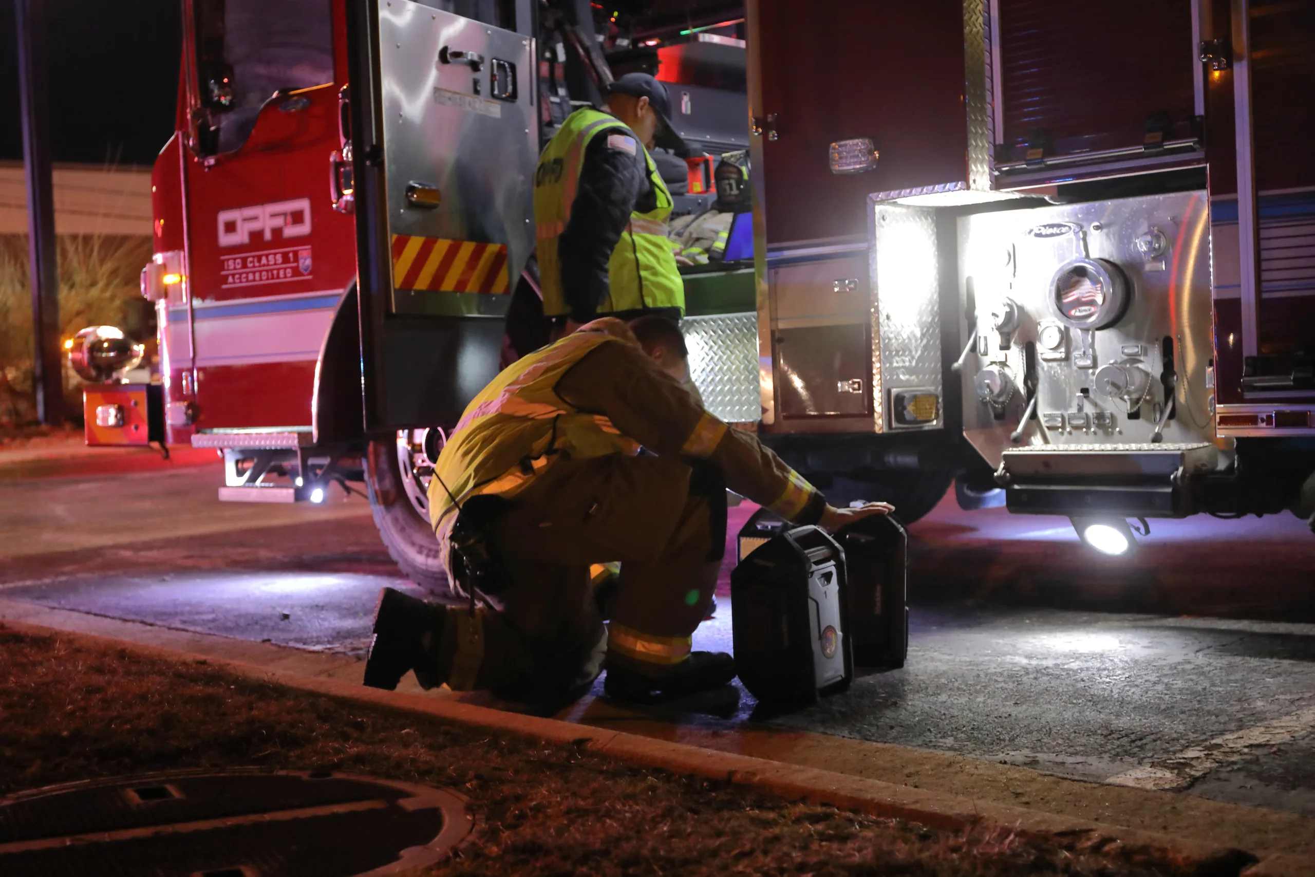 Overland Park firefighters and Kansas Gas Service personnel set up air-quality monitoring equipment in the immediate area of the leak.