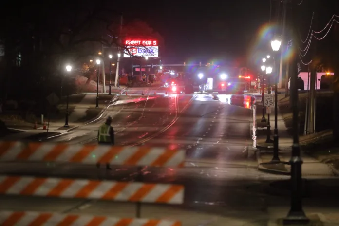 Antioch Road remained closed overnight as Kansas Gas crews made repairs to the broken pipe.