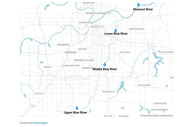 That means the Blue River and its tributaries — such as Indian, Brush and Tomahawk creeks — are exposed to pollution from the more than 20 cities they flow through on both sides of the state line.