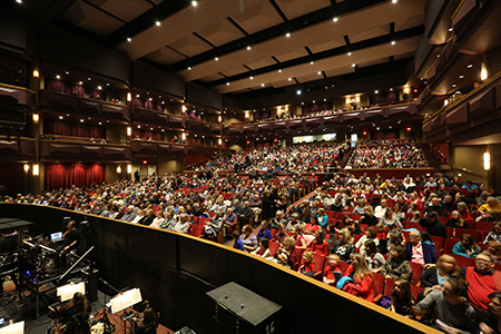 In 1990, that dream was realized, and the center soon became a cultural hub for the rapidly growing county. The Midwest Trust Center’s growth parallels that of Johnson County, expanding from 50 events the first season to around 150 annually today. Events include Midwest Trust Center Series, the annual series of around 30 events presented by JCCC that feature professional, internationally known artists in a wide variety of genres; academic branches of JCCC; and community groups who rent the space.