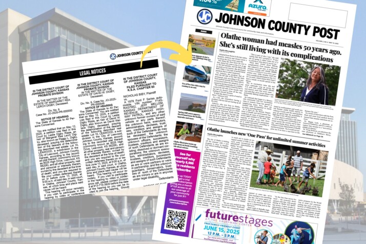 Looking to place a legal or public notice in Johnson County, Kansas? The Johnson County Post has got you covered. We offer legal notice placement in our weekly print edition for prices that are significantly lower than other metro area options. We focus on making it easy to: