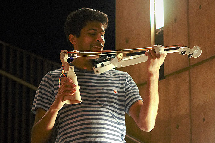 Dinakar, an accomplished violist who has played with the National Youth Orchestra, had been thinking of ways to marry his passion for music with his study of product design. Over the previous couple years, he’d come up with a design for an electric violin that could be rendered by anyone with a 3-D printer. Now, he was wondering if it was possible to devise a prosthetic that would allow someone without an arm to play the violin or cello.